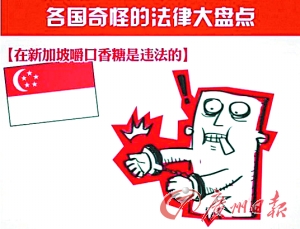 相较于上面两条法律,新加坡的口香糖禁令为更多外国人耳熟能详。至今为止,个人在新加坡境内销售口香糖或是携带口香糖入境是违法的。